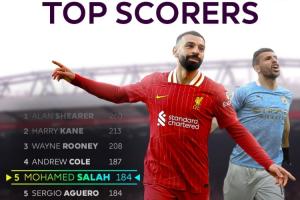 这样一来,萨拉赫将可以继续在未来两个赛季在英超建功立业。目前他的英超历史进球数为184球,是英超现役第一人。而排在英超历史射手榜第五的他,距离头号射手希勒还差76球。