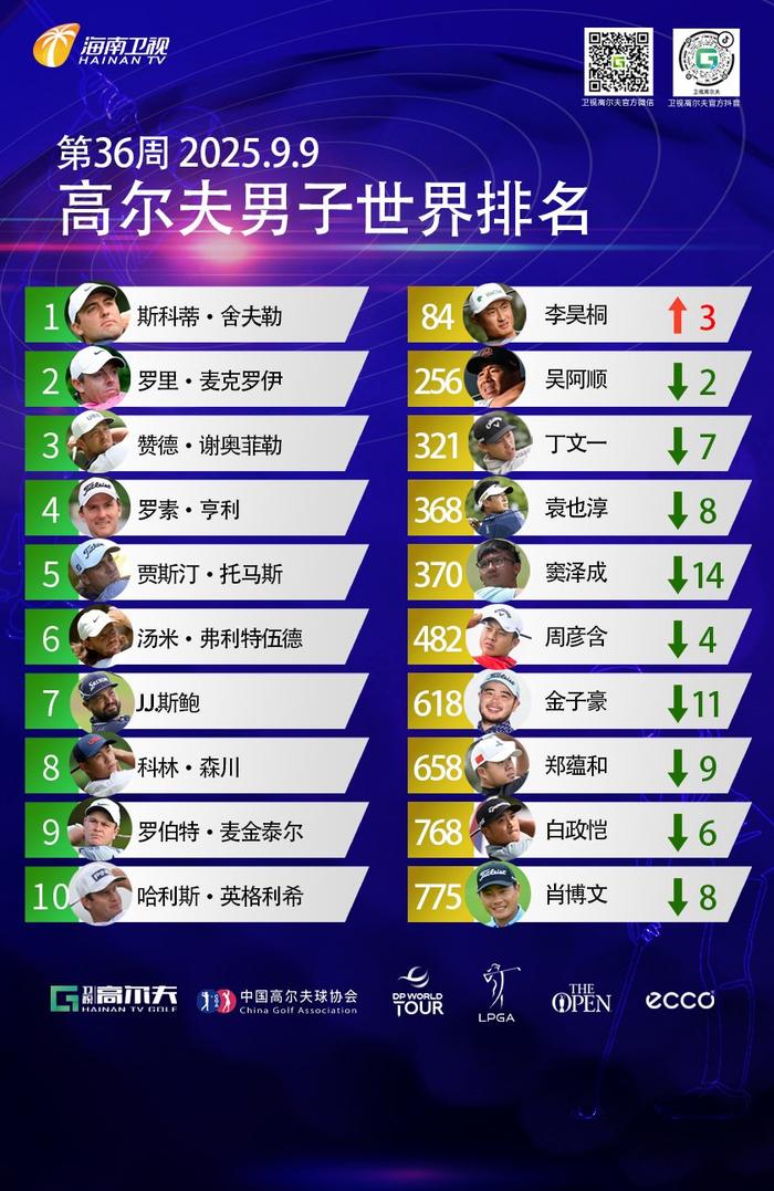 男子世界排名:前十无变化 舍夫勒稳坐世界第一