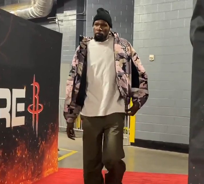 此前三连败!杜兰特潇洒入场 头戴時髦毛帽&身穿撞色拉链夹克敞怀