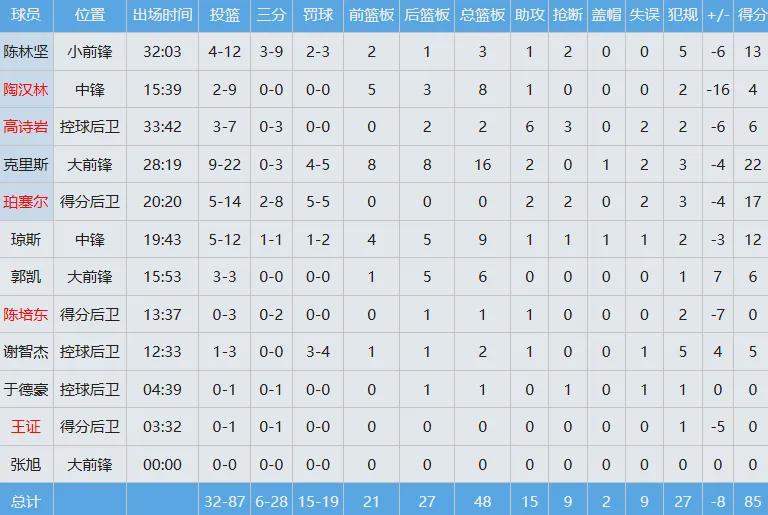 山东队数据如下: